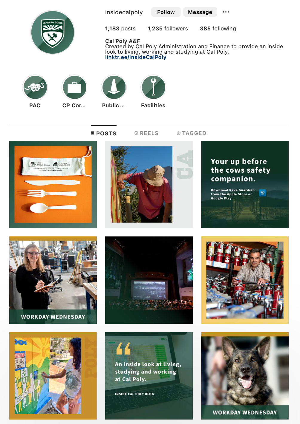 While working for the Cal Poly Corporation, I managed the social media platforms for Administration and Finance (Inside Cal Poly) and the Cal Poly Police Department.